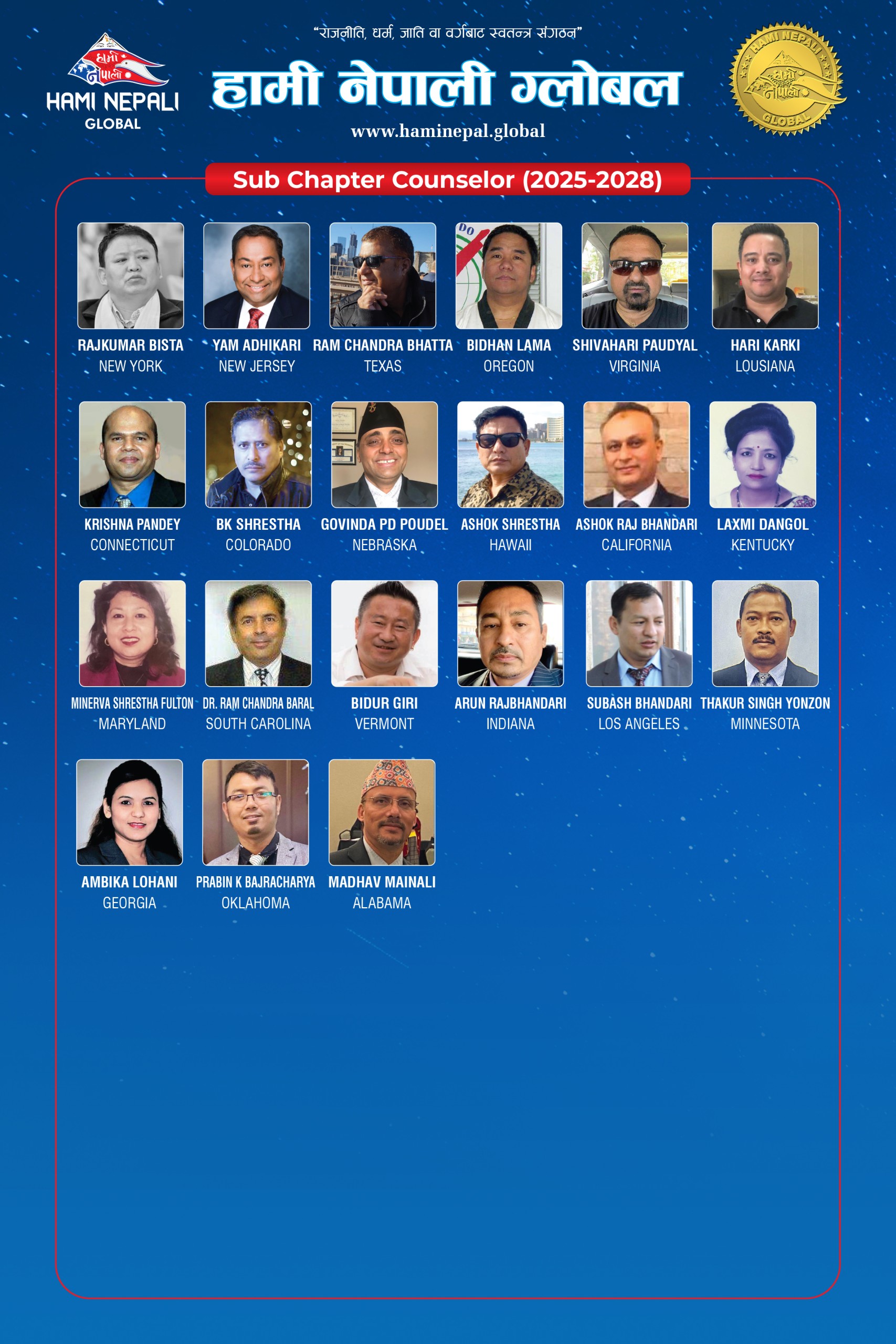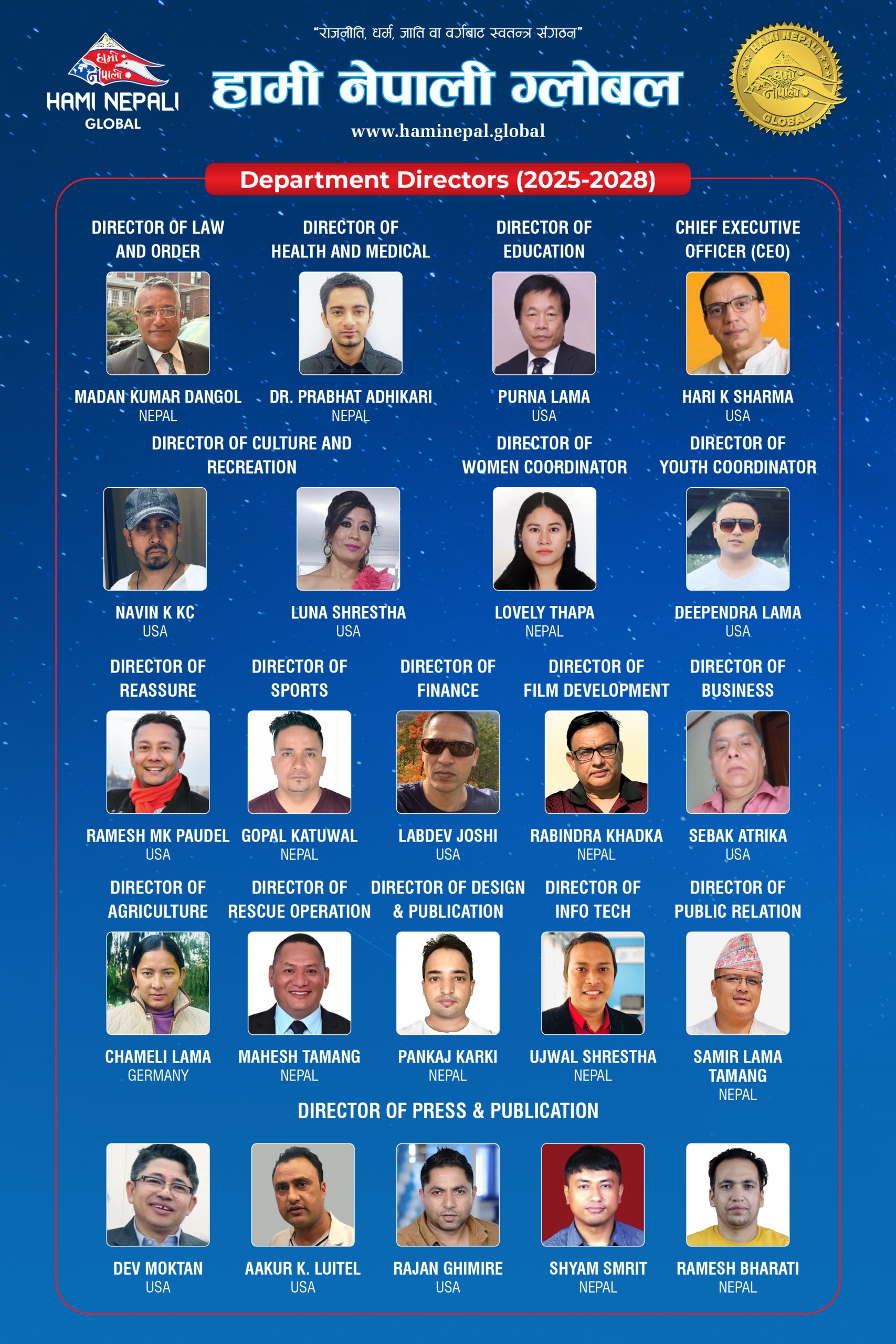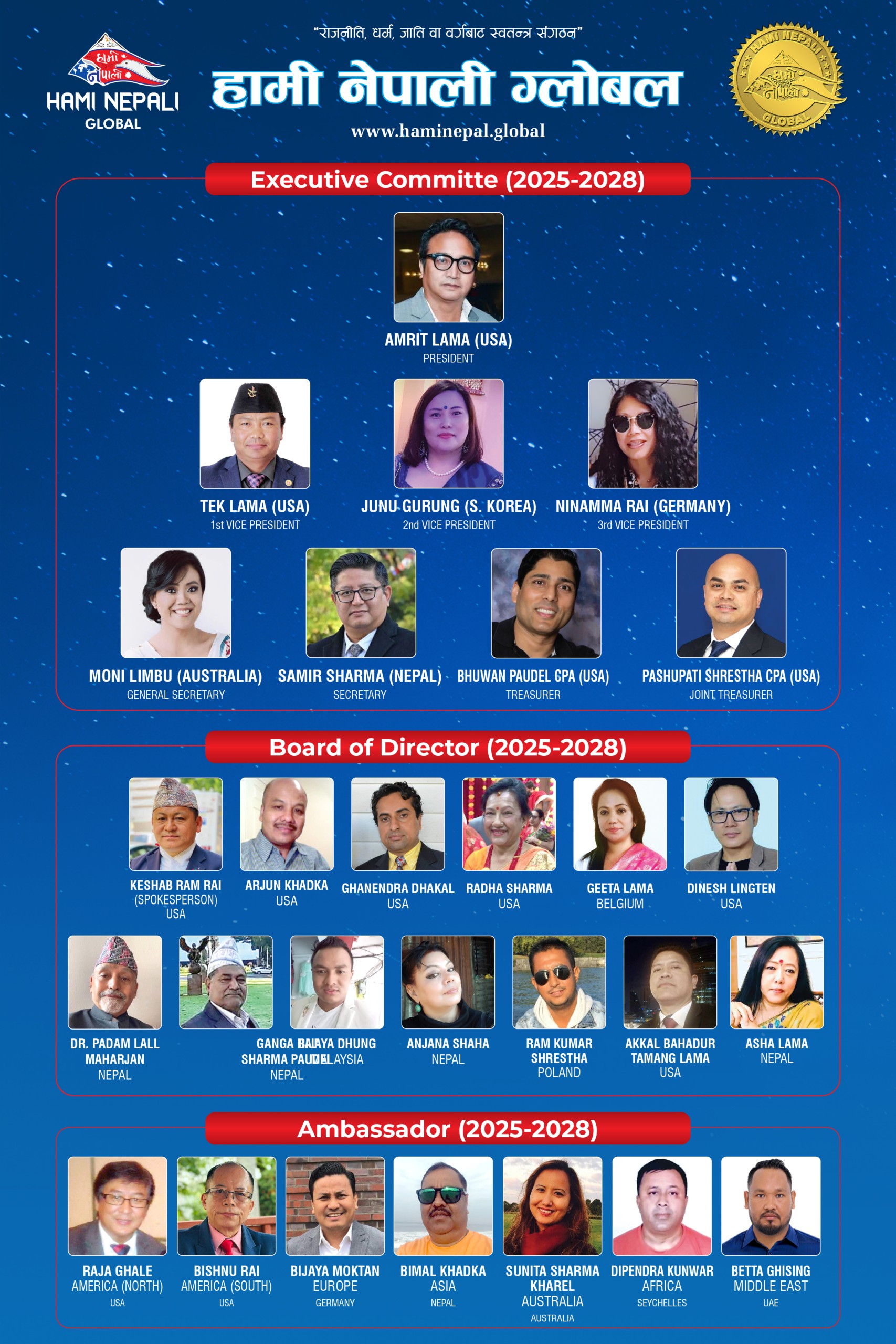 | President | Amrit Lama | USA |